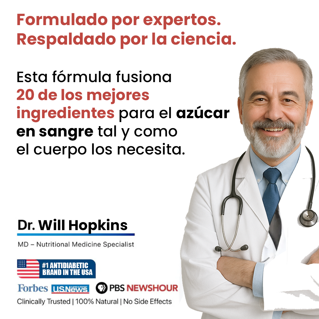 Blood Sugar Complex® combina 20 ingredientes clínicamente probados como berberina, canela de Ceilán, ácido alfa lipoico y resveratrol, que reducen glucosa hasta un 35%, bloquean la absorción de azúcar y reactivan el metabolismo. El resultado: menos barriga, más energía y hasta 10 años menos en tu piel.