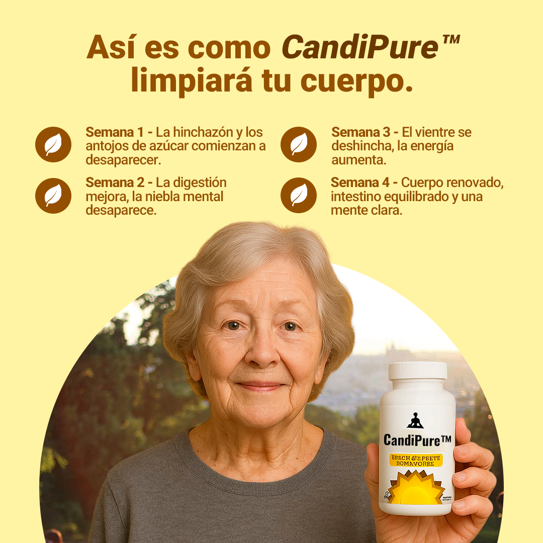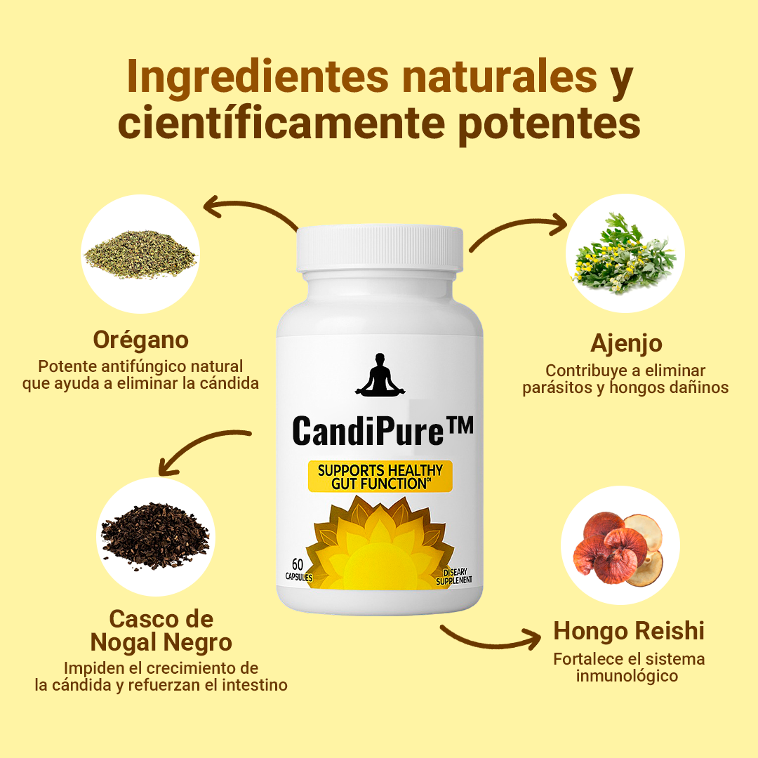 Gracias a su potente combinación de ingredientes naturales antifúngicos, desintoxicantes y energizantes, CandiPure™ elimina cándida, regula hormonas, mejora el ánimo y promueve una pérdida de peso real y sostenida.