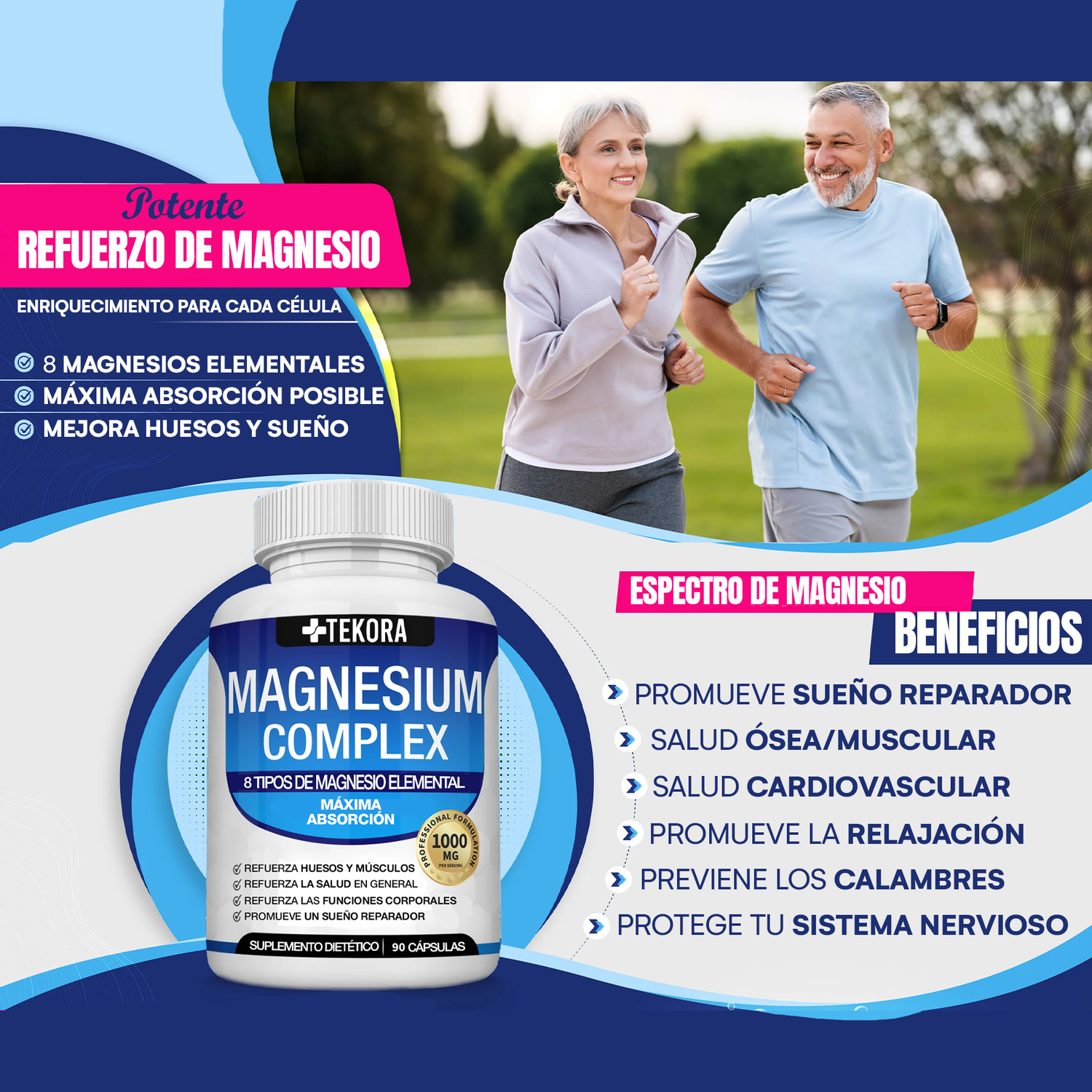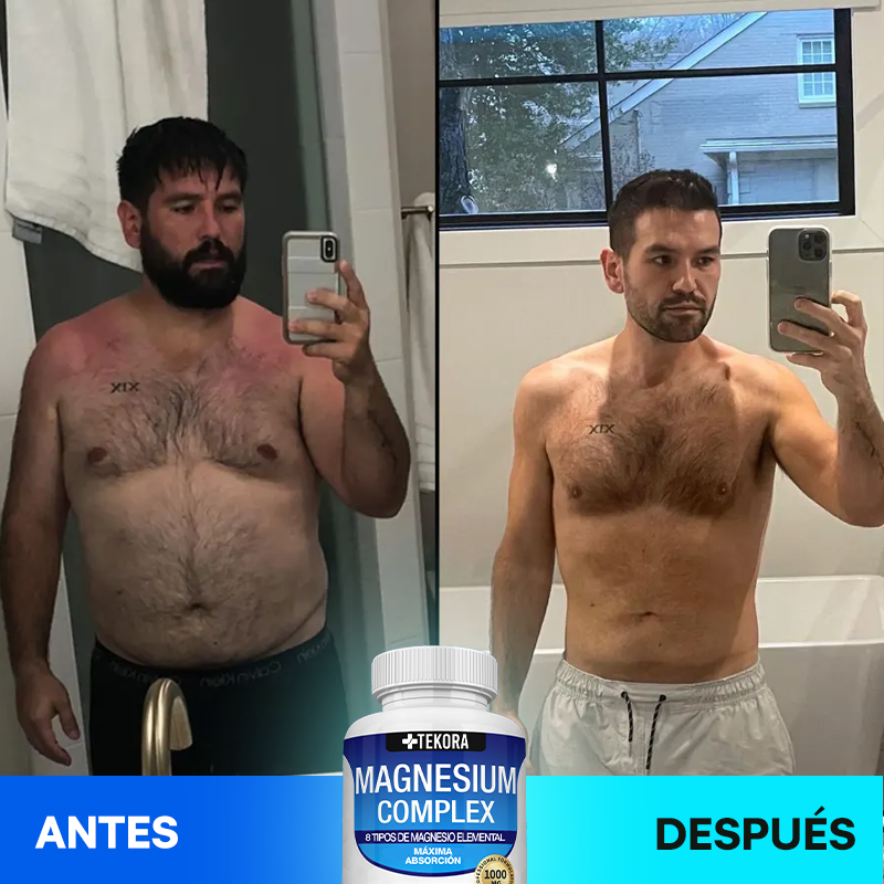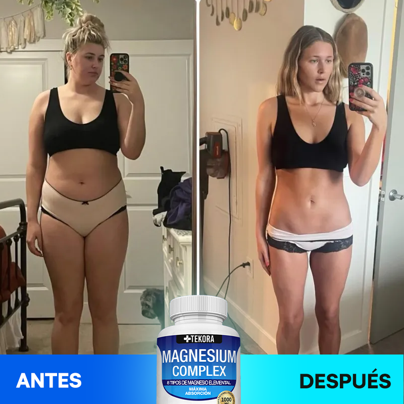 TEKORA Magnesium Complex combina 8 formas moleculares avanzadas (treonato, glicinato, malato, citrato, taurinato, bisglicinato, cloruro y óxido microfiltrado) que penetran donde otros magnesios ni llegan. El resultado: absorción superior del 98%, sin efectos secundarios y con una potencia anti-edad avalada por la ciencia. No es un suplemento más: es el protocolo mineral definitivo para rejuvenecer.