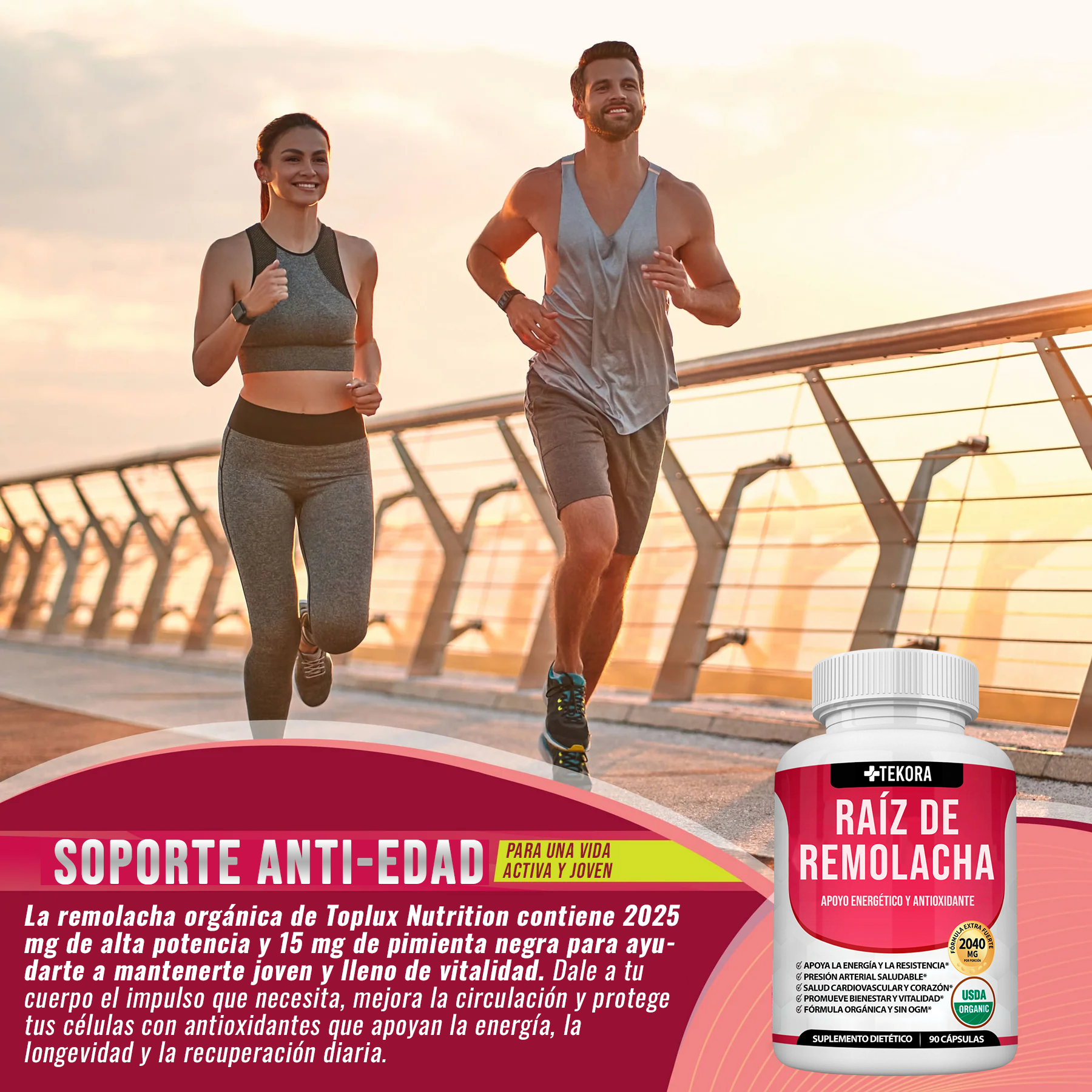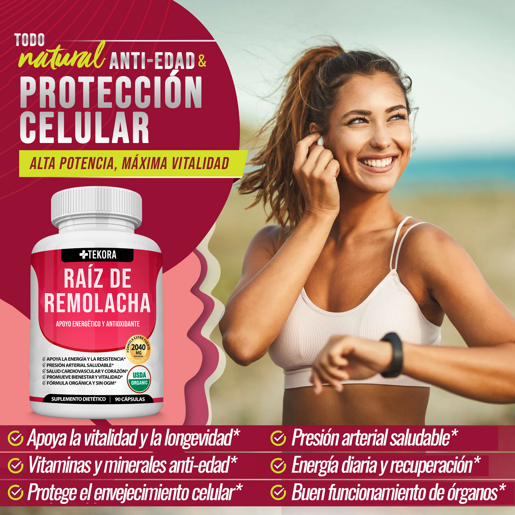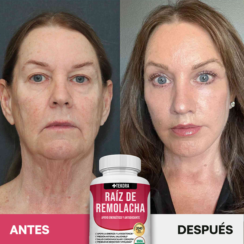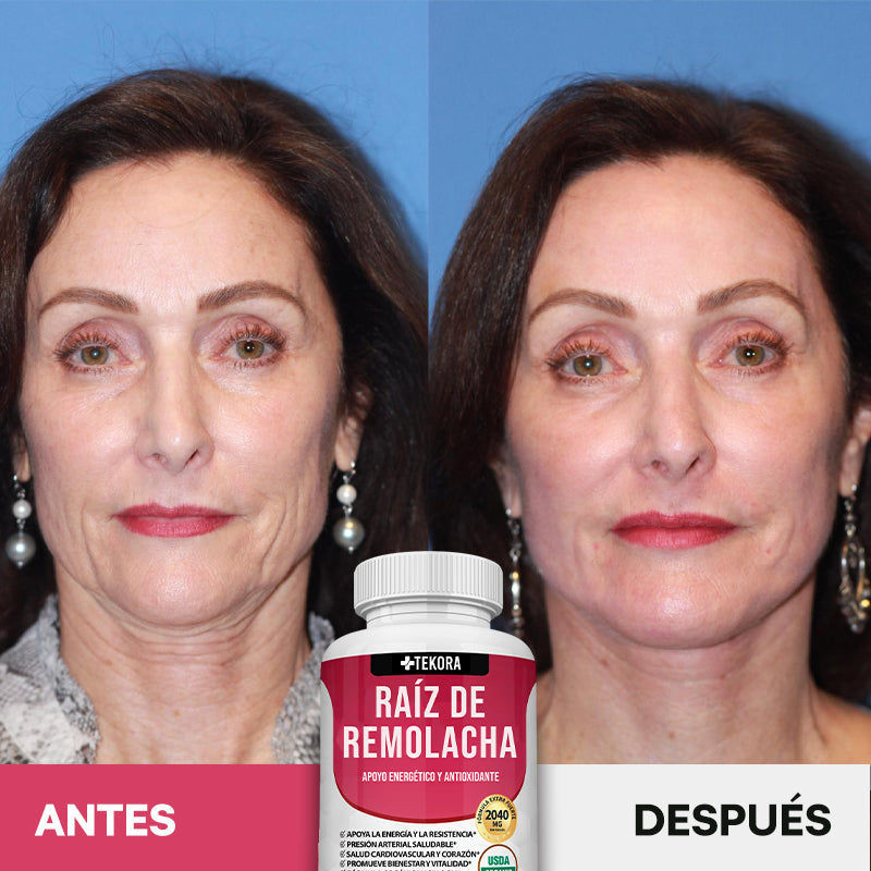 Además, el nitrato natural de la remolacha apoya el rendimiento y la resistencia, ayudando a sentirte activo sin agotarte. Todo en cápsulas fáciles de tomar, sin azúcares, sin excusas: una rutina anti-edad que cabe en tu bolsillo.
